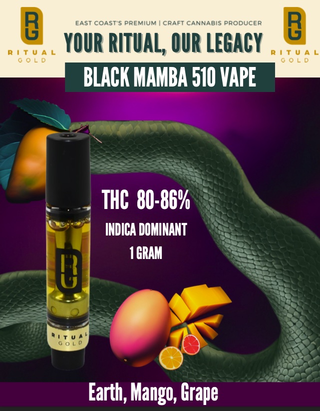 Black Mamba vape will fill your senses with grape, mango and earthy flavours sure to be enjoyed by all vape enthusiasts. Black Mamba is a potent indica dominant hybrid that is an exotic cross of Mint Chocolate Chip and The Cube.