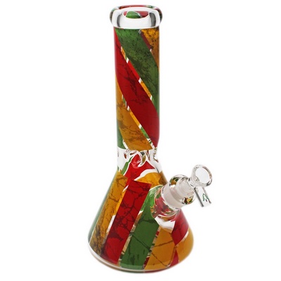 12″ Rasta decal glass bong by Tree Glass. Classic beaker shape with bowl included. Percolated water diffusion for smooth airflow.