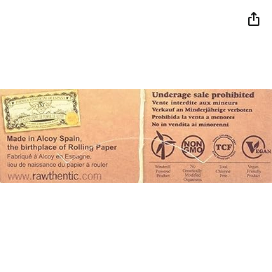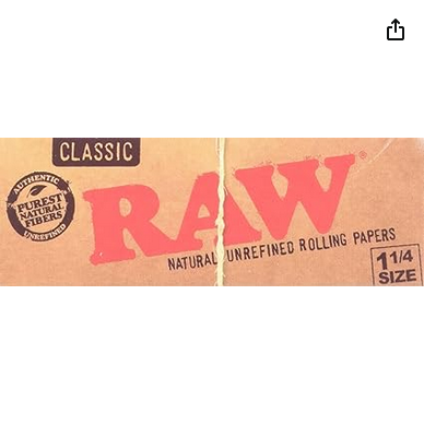 Raw Unrefined Classic 1 1/4 Rolling Papers. 50 leaves per pack. RAW unrefined papers contain a blend of non-chlorinated fibers. Finished with a natural hemp gum-line to match the burn rate of the rolling paper.