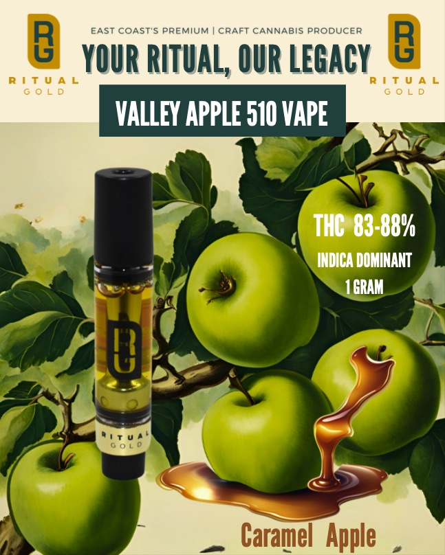Valley Apple vape is distilled from whole flower. Valley Apple vape will fill your senses with flavours of crisp apple and caramel.
